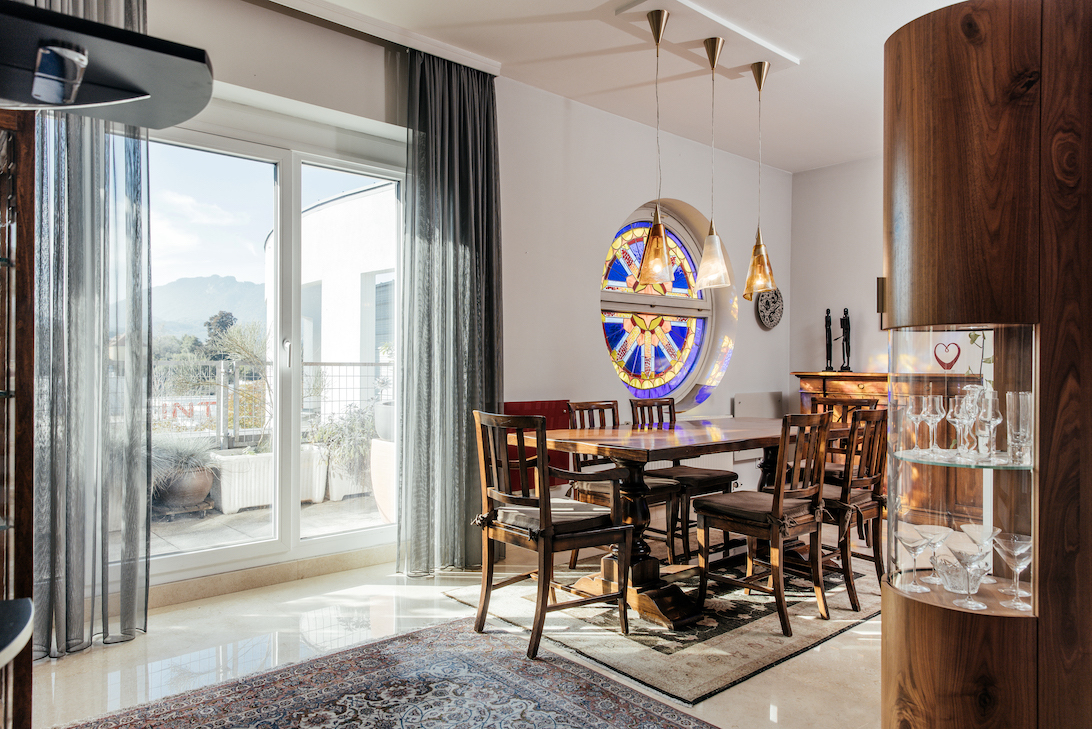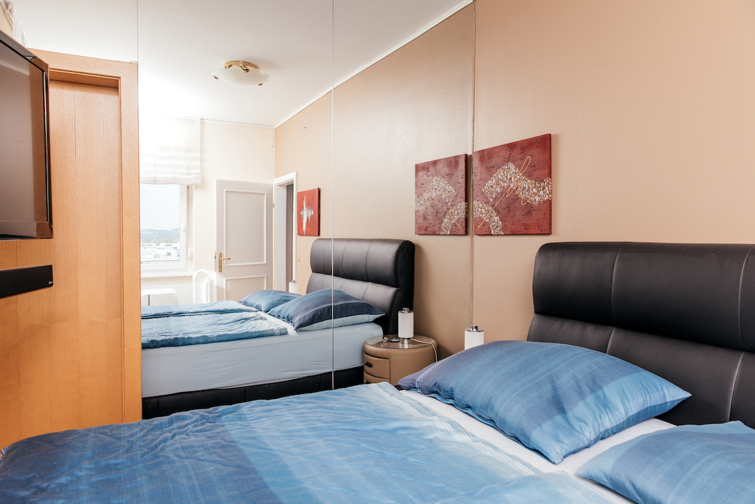 Weiteres gehört zu dem Penthouse ein geräumiges Kellerabteil und zwei Tiefgaragenplätze (Miete unbefristet).