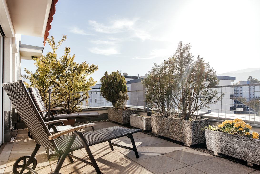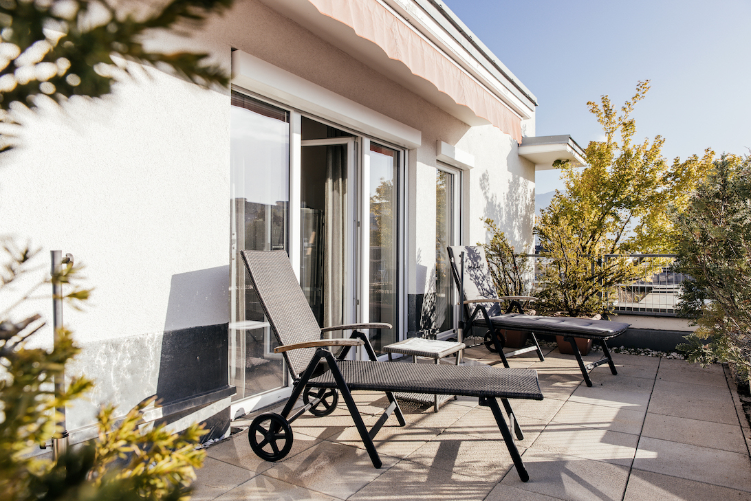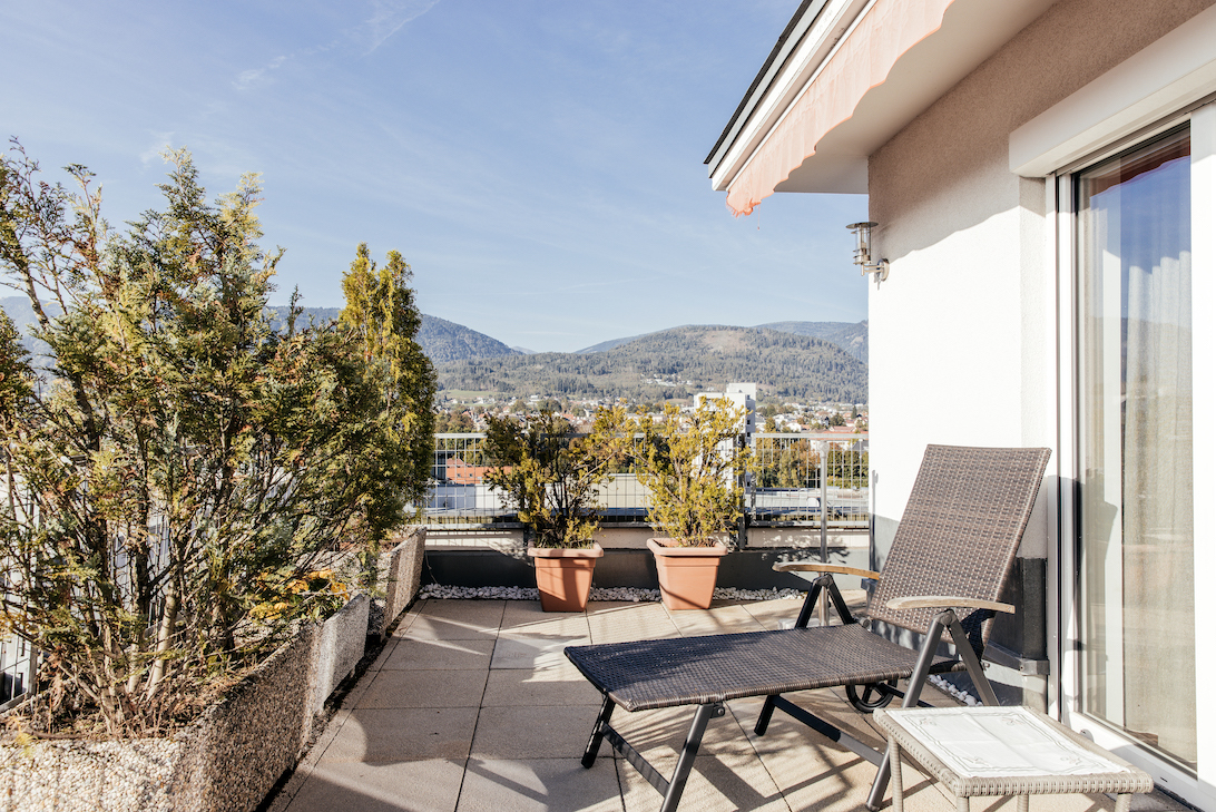 Nehmen Sie entspannt Platz, auf der herrlichen Sonnenterrasse und genießen Sie die Aussicht.